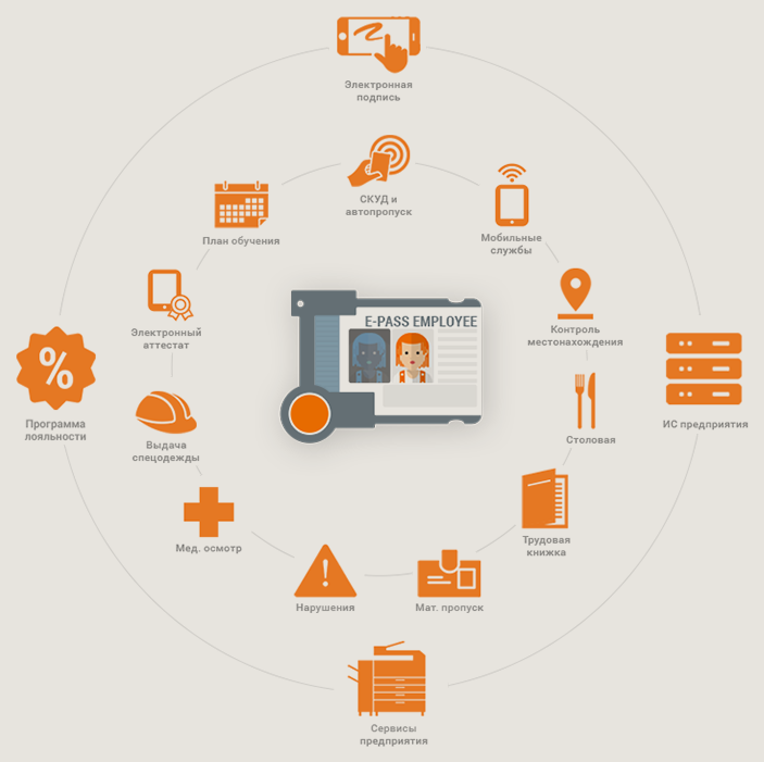 Это направление представляет собой комплекс решений, свободно ориентированных вокруг главного ядра — Электронного Паспорта Работника (ЭПР). Это ядро представляет собой систему, содержащую данные об образовании работника, сведения о повышениях квалификации, данные по выданным материально-техническим пропускам, трудовой биографии, поощрениях и выговорах, графиках и результатах прохождения медицинских комиссий и плановых осмотрах, графиках и фактах выдачи средств индивидуальной защиты (СИЗ), времени нахождения или отсутствия на рабочем месте.