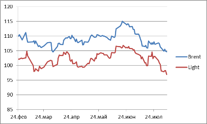 News oil and gas industry of Russia and foreign countriesAugust 7, 2014Oil: Brent 104.73 ↓ Light 96.92 ↓ Courses: EUR 48.2432 ↑ USD 36.1102 ↑