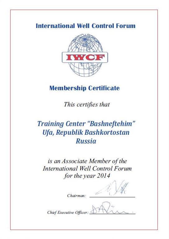 Учебный Центр «Башнефтехим» Ассоциированный Член Международного Форума по Управлению Скважиной (IWCF)13 августа 2014C 13 августа 2014 года Учебный Центр «Башнефтехим» является Ассоциированным Членом Международного Форума по Управлению Скважиной (International Well Control Forum – IWCF) QA-Ltr 51 кб