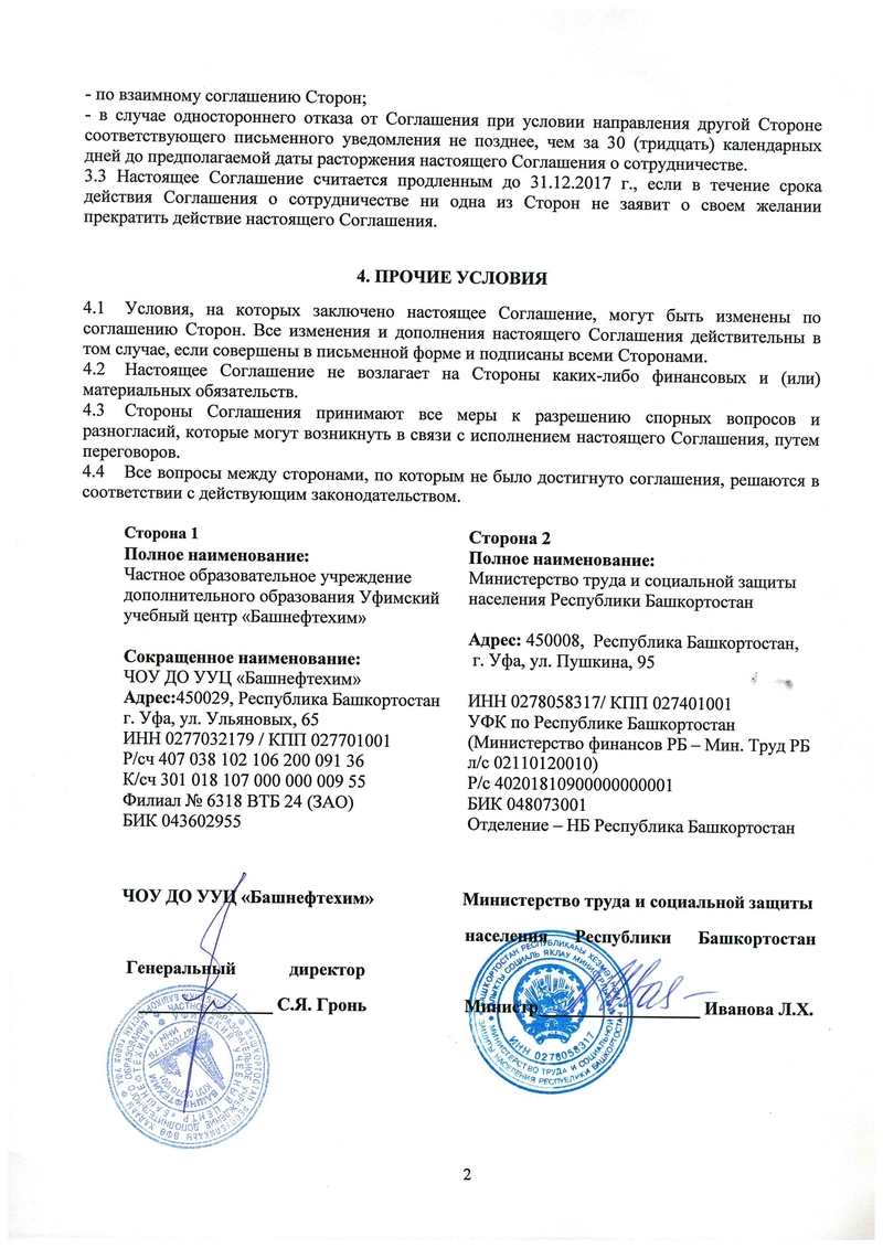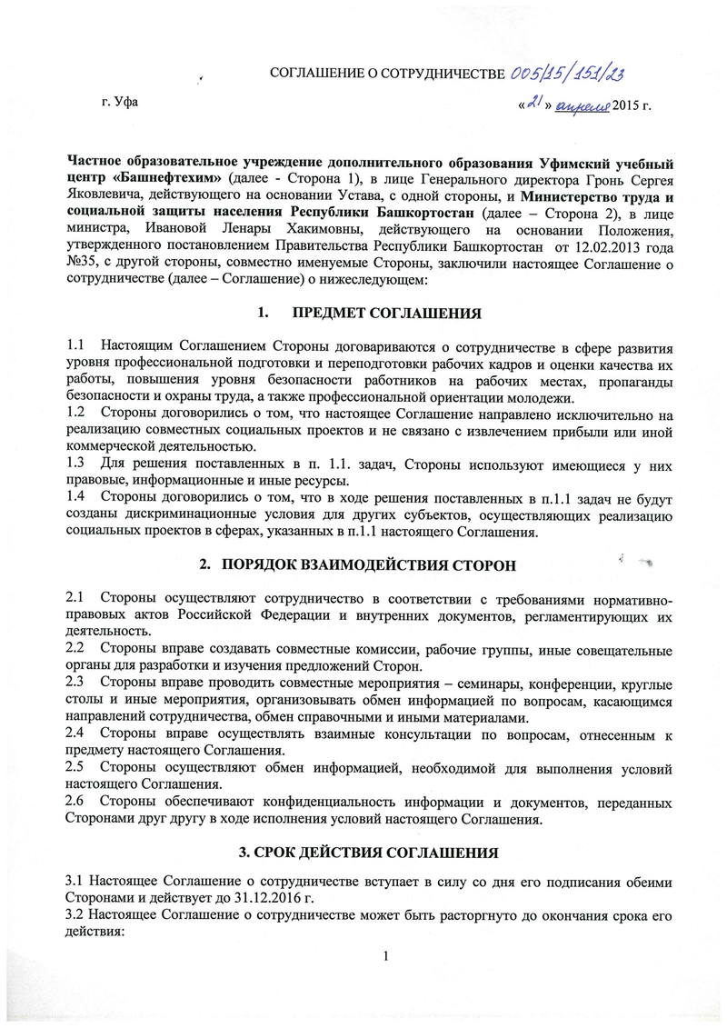 Башнефтехим подписал соглашение о сотрудничестве с Министерством труда и социальной защиты населения Республики Башкортостан