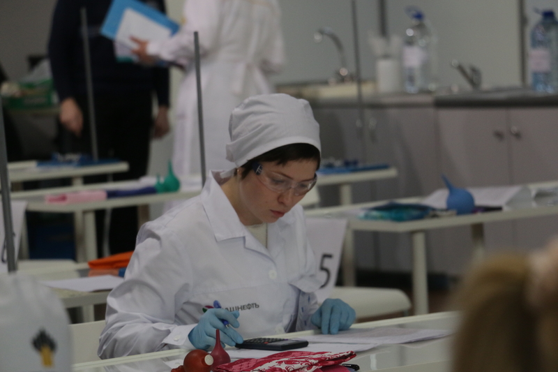Национальный чемпионат проводился с 31 октября по 3 ноября 2015 года в г. Екатеринбурге на базе Международного выставочного центра Екатеринбург-ЭКСПО. В Чемпионате приняли участие 246 конкурсантов, представляющих более 100 предприятий 32 холдингов из 30 регионов Российской Федерации. Соревнования проводились по 24 компетенциям. Оценивали выступления участников более 260 экспертов. Среди участников были представители ПАО ОАНК «Башнефть», ОАО «НК «Роснефть», ПАО «Татнефть», ОАО «Российские железные дороги», ГК Росатом, ПАО «Россети», АО «Росэлектроника», ПАО «Объединенная авиастроительная корпорация», АО «Объединенная судостроительная корпорация» и т.д. Возраст участников – от 18 до 28 лет. Наша компетенция «Лаборант химического анализа» была презентационной, «пробной». Немного о конкурсантах. Лиханова Светлана, 24 года. Лаборант химического анализа 5 разряда ПАО АНК «Башнефть», в 2014 году заняла 2 место в корпоративном конкурсе «Лучший по профессии». «Химия – магия современного мира! Эта наука всегда меня притягивала. В наши дни, используя знания прошлых поколений и ультрасовременные технологии, можно достичь огромных результатов!». На вопрос, что повлияло на выбор ею профессии, Светлана отвечает: «В процессе обучения мне нравилось проводить исследования, эксперименты, постигать особые свойства веществ. Всегда казалось, что химики обладают тайным знанием». Увлекается поэзией, рукоделием, народными танцами. Участвует в спортивных соревнованиях и творческих конкурсах. Садыкова Марина, 26 лет. Лаборант химического анализа 4 разряда ООО «Башнефть-Полюс».
