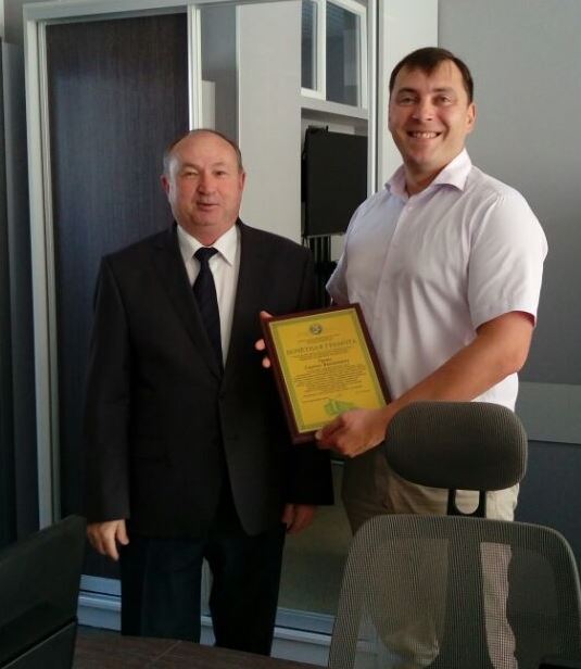 Сергею Яковлевичу Гронь была вручена Почетная грамота администрации Орджоникидзевского района г. Уфы за организацию профориентационной работы учащихся 9-11 классов общеобразовательных учреждений района. В ходе встречи обсуждались вопросы дальнейшего взаимодействия, в том числе, по вопросам профессиональной ориентации школьников и обучения работников муниципальных организаций и учреждений Орджоникидзевского района на базе УУЦ «Башнефтехим». |