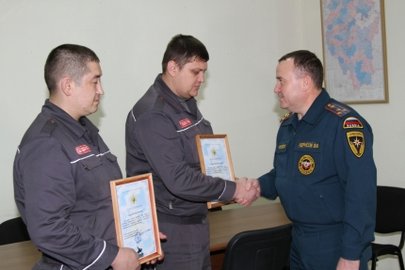 Фото: МЧС по РБ Напомним, 13 ноября этого года загорелась комната в доме по улице Кольцевой. Раньше пожарных на месте оказались проезжавшие мимо сотрудники ЧОПа. Узнав у соседей, что в квартире могут находиться люди, охранники вошли в задымленное помещение и вывели двух человек. Еще одного мужчину пришлось вынести на руках, он получил ожоги. Прибывшие пожарные потушили огонь. Пострадавший был доставлен в больницу. За мужество и гражданскую сознательность, проявленные при спасении людей, сотрудников охранного предприятия поблагодарил заместитель начальника ГУ МЧС по РБ Эдуард Идрисов.
