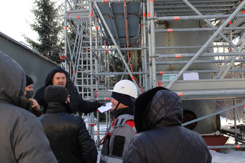 Важность и неоспоримость требования наличия полного комплекта средств индивидуальной защиты участники подтвердили, выполняя упражнения в рамках темы безопасного выполнения работ на высоте с применением тренажера Layher, вел тренинг ведущий специалист по организации обучения Никита Лотарев.