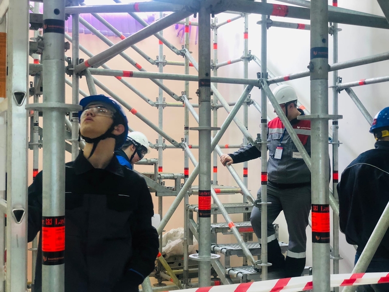 Фото: Новоуренгойский многопрофильный колледж Экспертом по компетенциям выступил тренер, специалист по организации обучения учебного центра «Башнефтехим» Михаил Никулин, непосредственно принимающий участие в подготовке к пробным соревнованиям. Для того, чтобы практические задания были максимально приближены к реальным условиям на месторождении и на производственных объектах, использовались возможности VR-тренажеров и системы строительных лесов Layer.