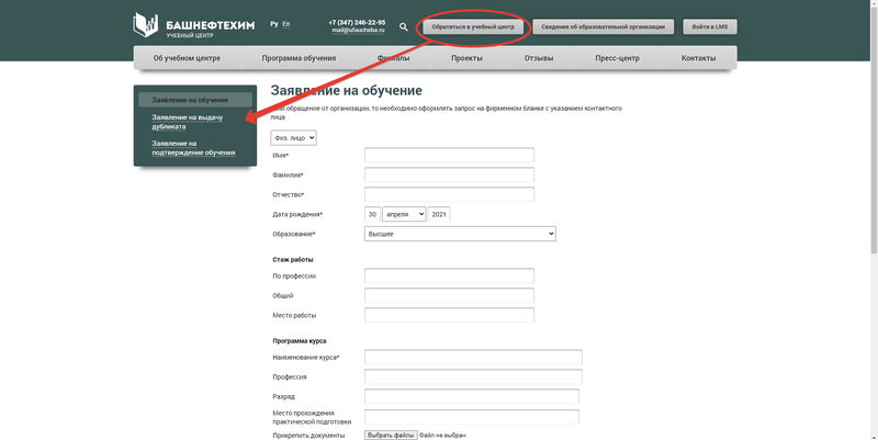 Подать заявление на обучение или выдачу дубликата стало проще и удобнее30 апреля 2021На сайте учебного центра «Башнефтехим» появился раздел обращений.